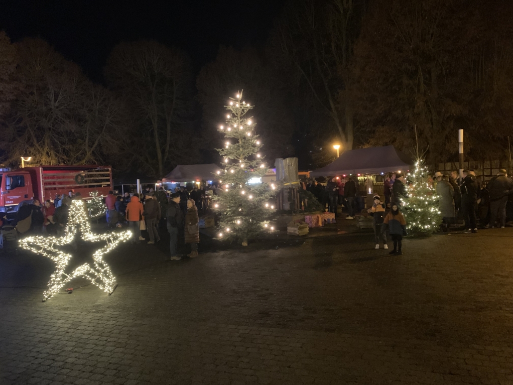 Großenlüder. – Am Samstag, den 29.11.2025, feierte die Freiwillige Feuerwehr Großenlüder-Mitte e.V. eine gelungene Premiere: Zum ersten Mal lud sie zum „Weihnachtszauber der Feuerwehr“ auf den Rathausplatz ein. Der Platz verwandelte sich dabei in eine stimmungsvolle, liebevoll geschmückte Weihnachtswelt, die dem Namen des Festes alle Ehre machte. Selbst die Einsatzfahrzeuge der Feuerwehr erstrahlten in festlichem Glanz, geschmückt mit Lichterketten, die gemeinsam mit weihnachtlicher Musik für ein besonderes Ambiente sorgten.